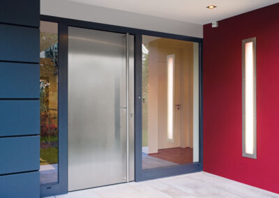 Een voordeur biedt niet alleen toegang tot uw huis, maar weerspiegelt ook de persoonlijkheid van de bewoners. Schüco-deuren combineren tijdloze ontwerpen met de hoogste normen op het gebied van veiligheid, warmte-isolatie, weerbestendigheid en duurzaamheid. De ontwerpmogelijkheden zijn vrijwel onbeperkt en zelfs deuren tot 3 meter hoog kunnen worden vervaardigd.