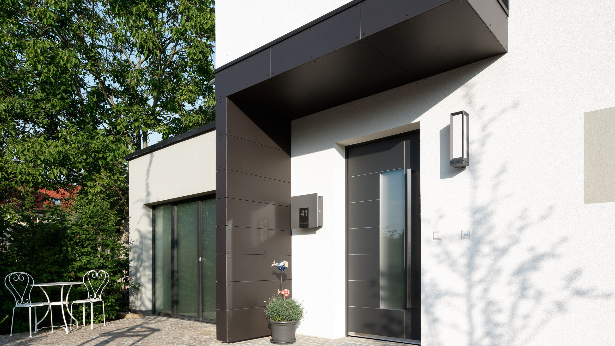 De in een deur geïntegreerde vulling, is dankzij de verscheidenheid aan kleuren en vormen een belangrijk element om uw deur een onderscheidend design te geven. Uw lokale Schüco-partner heeft een uitgebreide keuze voor u.